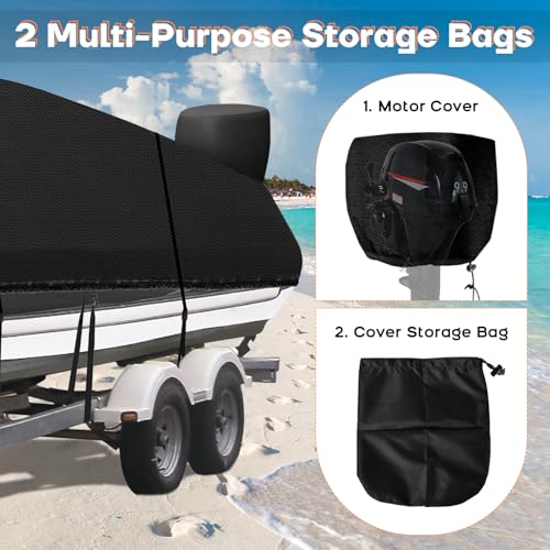 Practical storage: each V-hull boat cover comes with a storage bag. When not in use, the hull cover can be quickly folded and stored dust-free and ready to use on the boat or garage. The storage bag doubles as a versatile protective cover for your boat's engines and other equipment.