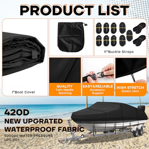 Boat Tarpaulin Boat Tarpaulin, 420D Oxford Cloth Tarpaulin for Boats, Anti-UV Boat Tarpaulin with Storage Bag, for V-Hull, Rowing Boat, Fishing Boat, Black