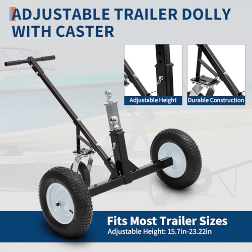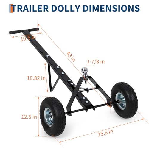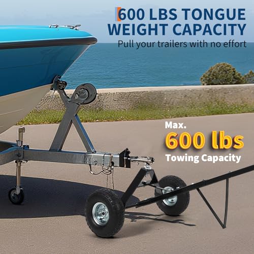 Boat Trailer Dolly, Metal Trailers with Hand Grip & Coupling Ball, 275 kg Load Capacity, Camper Moving Cart with 30cm Pneumatic Tires for Caravan Boat Jet Ski 110 x 65 x 31 cm