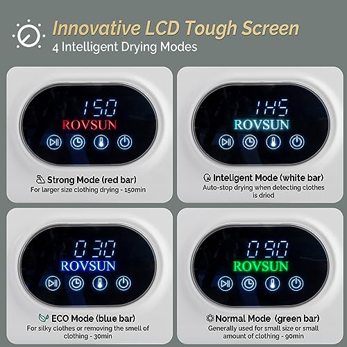 [Multiple Drying Modes]: Eco mode: For delicate fabrics like silk or quick drying (30min). Normal mode: For a small load of clothes (90min). Turbo mode: For large or heavy – duty loads (150min). Auto mode: Automatically detects when clothes are dry. Additionally, the 3 – layer filtration system effectively collects pet hair and lint from your clothes. Even if you have pets at home, you don't have to worry about hair sticking to your clothes.