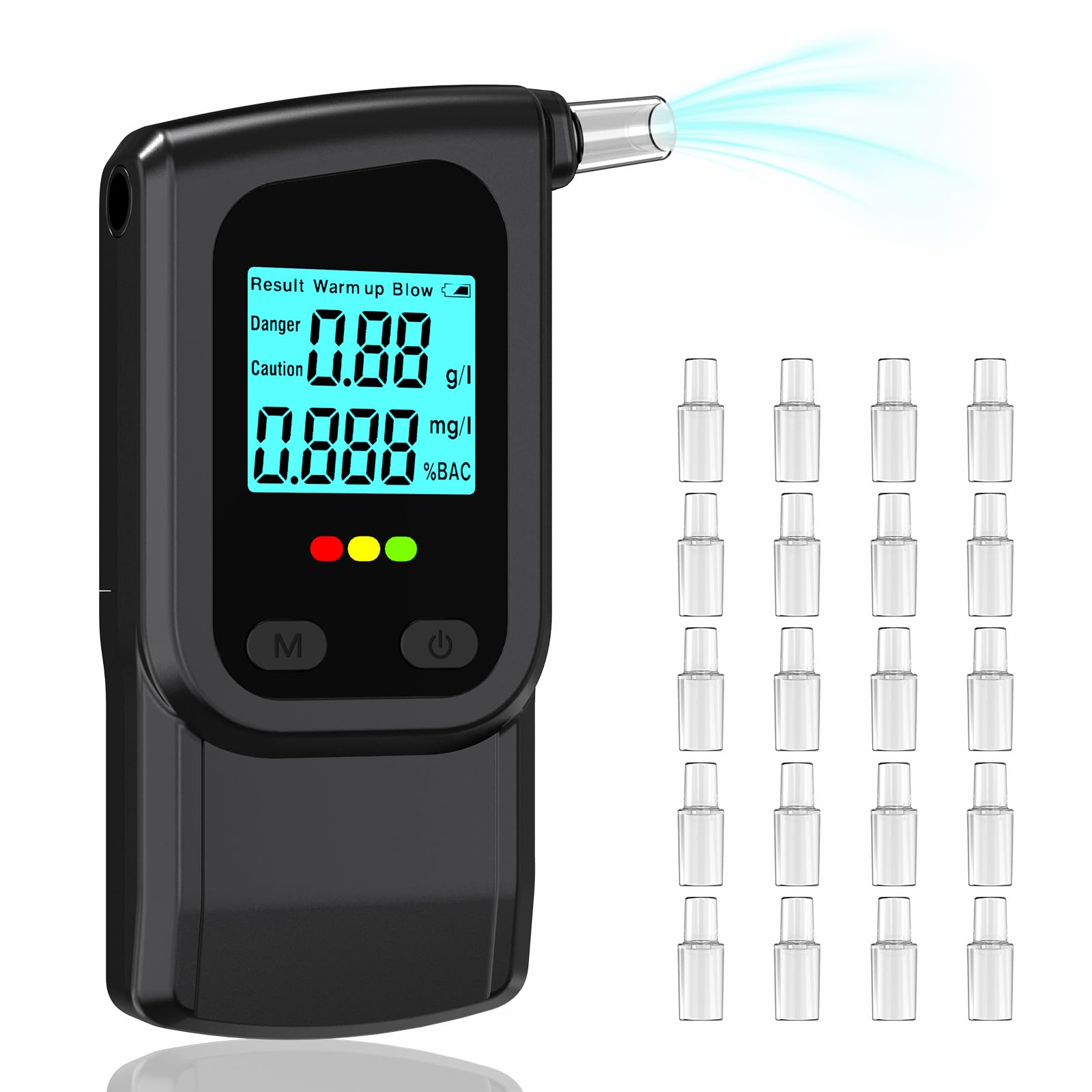 Breathalyser Alcohol Tester – Professional Breathalyzer with with LCD Display, High-Precision Portable Breathalyzer Includes 20 Disposable Mouthpieces for Personal & Party Use