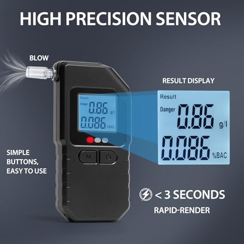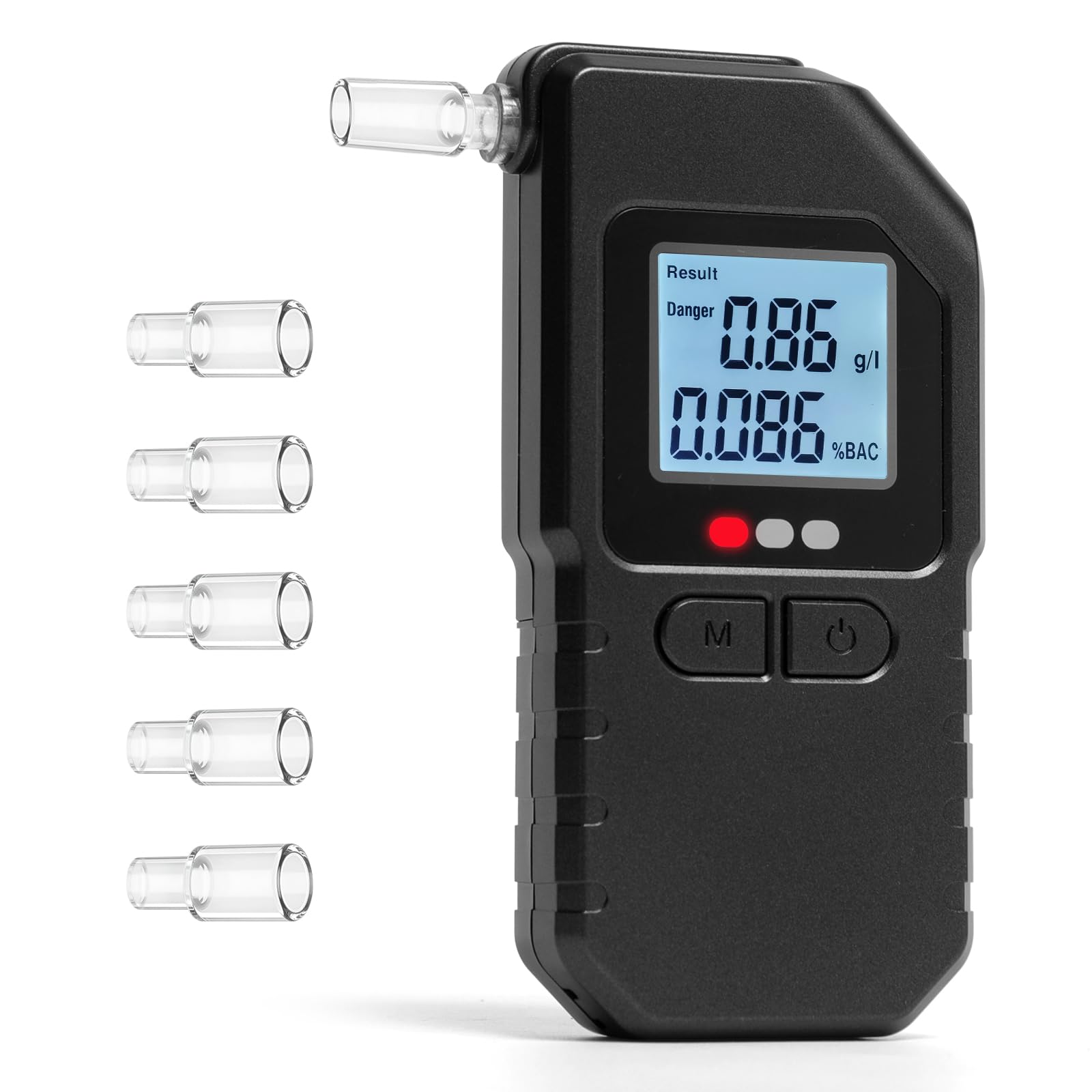 Breathalysers Alcohol Tester, Professional Dual Sensor Digital Breathalyzer with LCD Display, High Accuracy Portable BAC Test Device, Rechargeable for Personal & Car Use with Mouthpieces