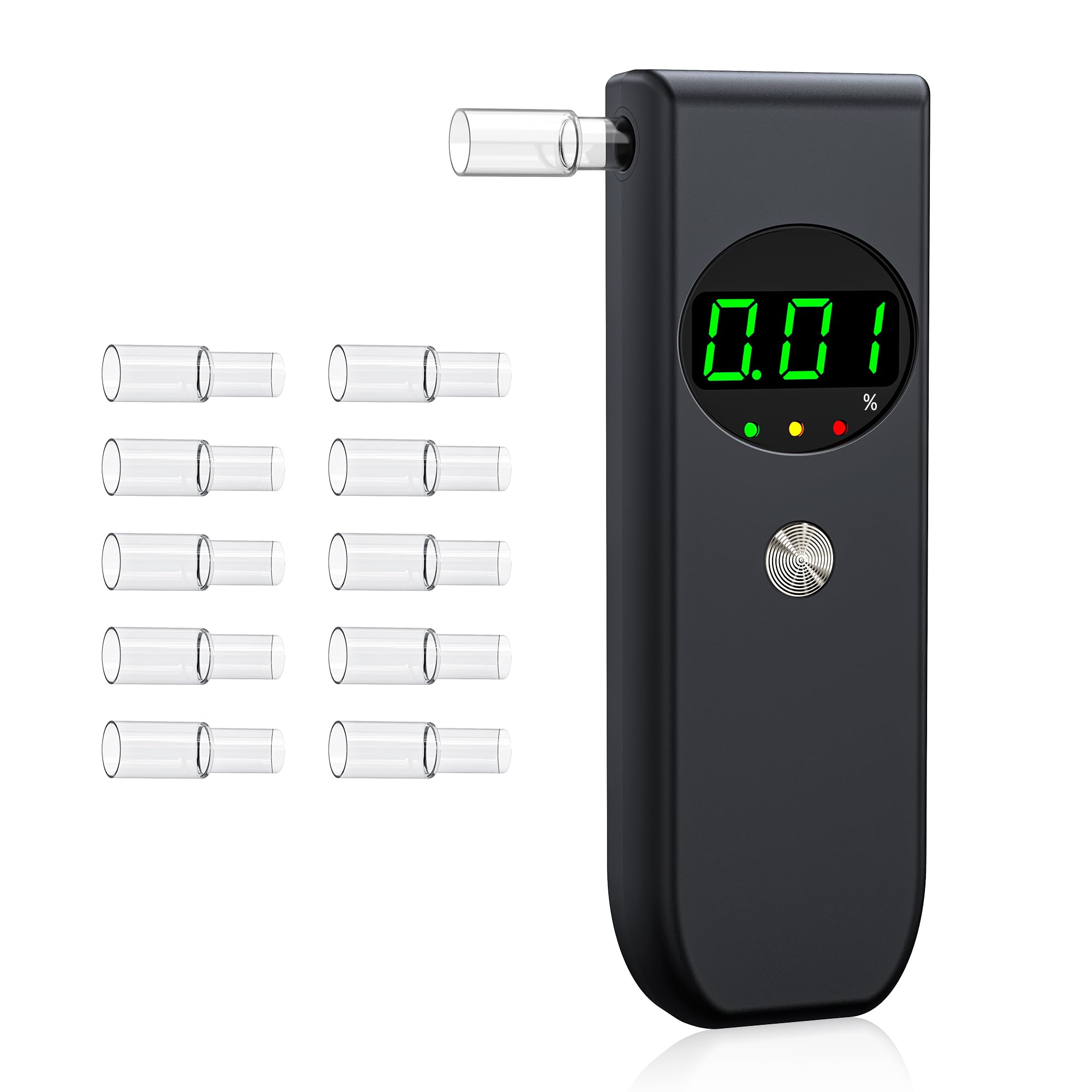 Breathalysers, Professional-Grade Accuracy Alcohol Tester With LCD Digital Display, Portable Breathalyzer for Personal Home & Professional Use With 10 Replaceable Mouthpieces(Black)
