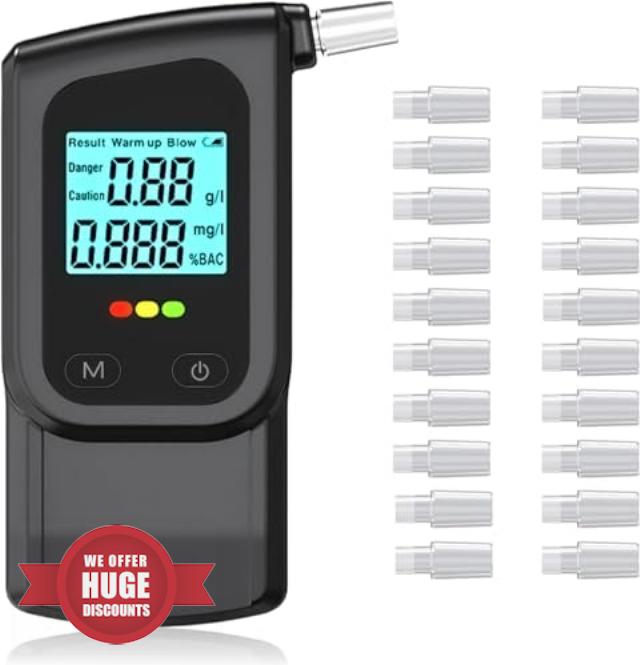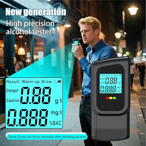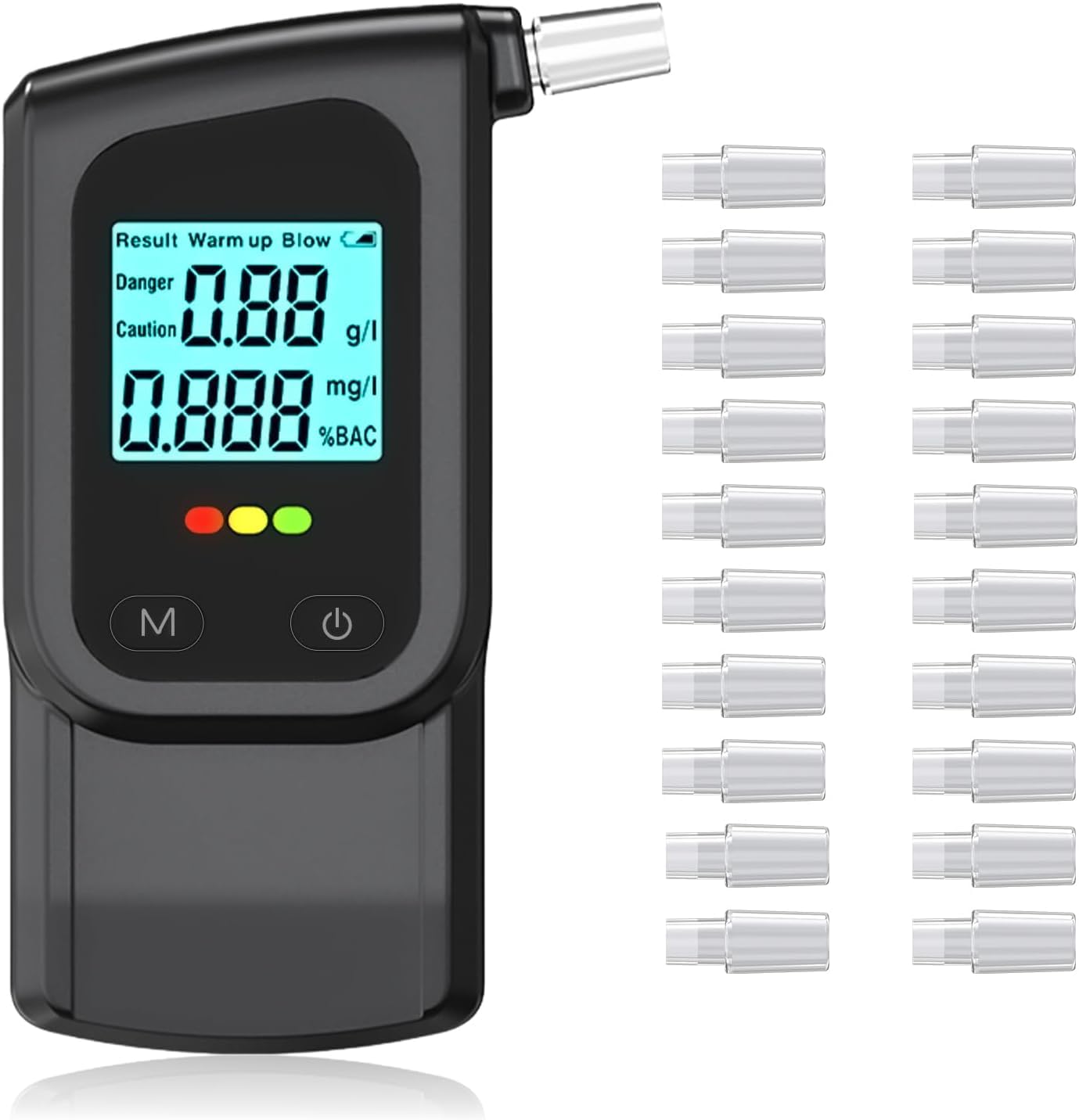 Breathalyzer Alcohol Tester with 20 Mouthpieces, Professional Breathalysers Portable Alcohol Breath Tester with Dual Sensor and Digital Blue LCD Display