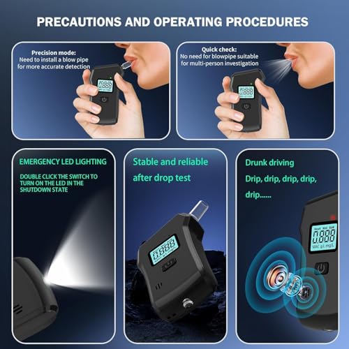 【High precision tests】This alcohol tester adopts advanced flat alcohol sensor, excellent sensitivity, more convenient for personal use. If the alcohol content exceeds the preset limit, This device will send video heating to remind you of your safety. Ideal for drivers.
