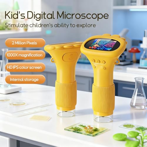 【High Definition Magnification】: Featuring a 2-inch HD screen with 1000x magnification, this microscope reveals intricate details of insects, plants and other specimens with exceptional clarity. The high-resolution display brings microscopic worlds to life for enhanced educational exploration.