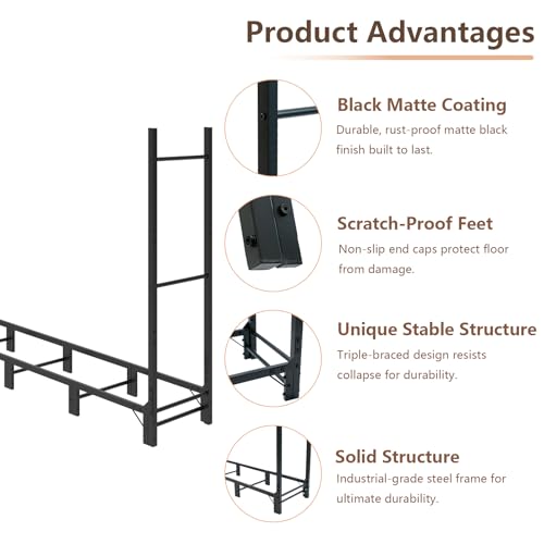 Sturdy Material & Optimal Ventilation: Built for longevity with durable steel construction frame featuring a black frosted powder-coated finish, rust and fade resistant. The open-air design ensures wood stays dry and prevents rot for long-term use