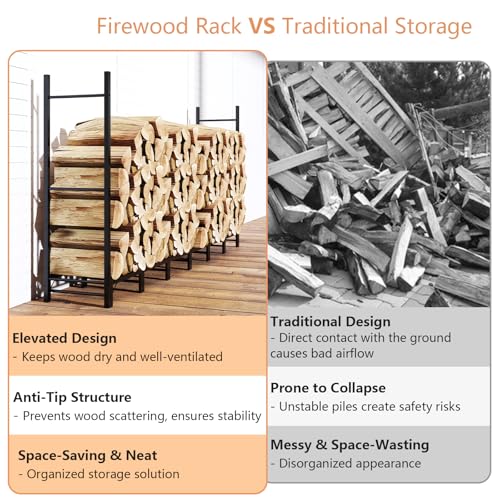 Easy Installation & Wide Application: Simple setup with included tools and instructions. Ideal for indoors (fireplace, wood stove, living room, cabin) or outdoors (patio, backyard, deck, garden), organized log storage year-round in a neat stack