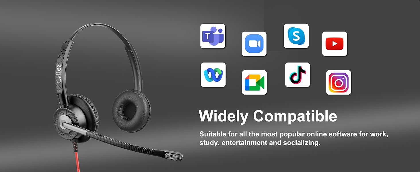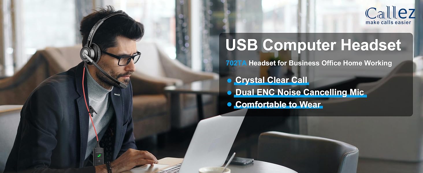 - 【Dual Mic Noise Cancellation】 Callez USB computer headset comes with advanced directional ENC dual microphones to eliminate over 95% of background noise (keyboards, chatter, home distractions). Ensure your voice is heard clearly on every call, meeting or stream, perfect for busy offices and home working environments.