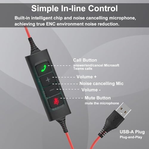 - 【Simple In-line Control】Convenient in-line controls, including a mute button with LED indicator and volume adjustment, allow for quick adjustments during meetings. Easily answer/end/cancel Microsoft Teams calls with a simple touch of call button.