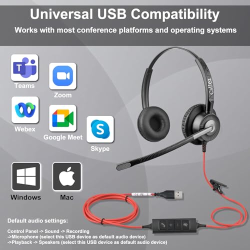Callez USB Headset with Microphone ENC Dual Mic Noise Cancelling, Wired Computer Headphones with In-Line Controls for PC Laptop Teams Meetings Zoom Video Call Business Office Home Work Crystal Clea