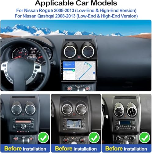 - [APPLICABLE CAR MODELS] – Android 13 OS with 4G RAM 64G ROM ensures smooth operation and faster response, the android head unit is compatible with Nissan Qashqai 2008-2013 (Square Hazard Light Button), coming with a canbus, meeting all your needs