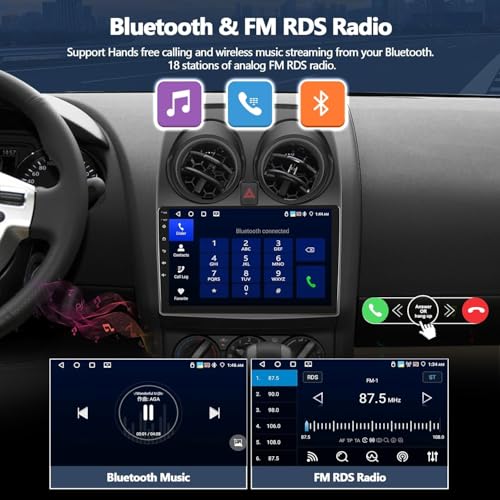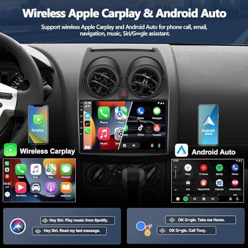 CAMECHO 4G+64G Android Car Stereo for Nissan Qashqai 2008-2013 with Wireless Carplay Android Auto, 9″ Touch Screen Car Radio with Bluetooth 5.0 32EQ GPS WiFi FM Backup Camera