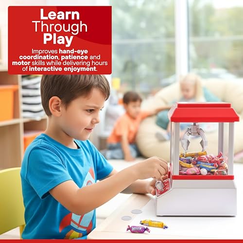 - – Use the 3 control buttons to move the claw and catch sweets, chocolates, or small prizes before the music stops – fun for both kids and adults.
