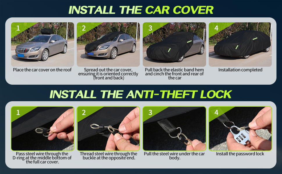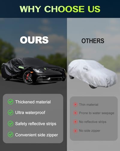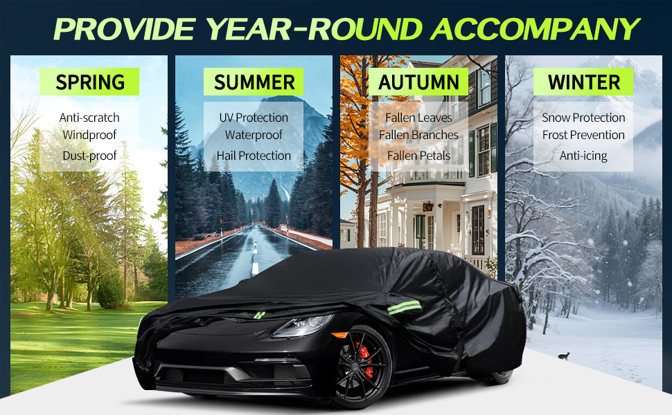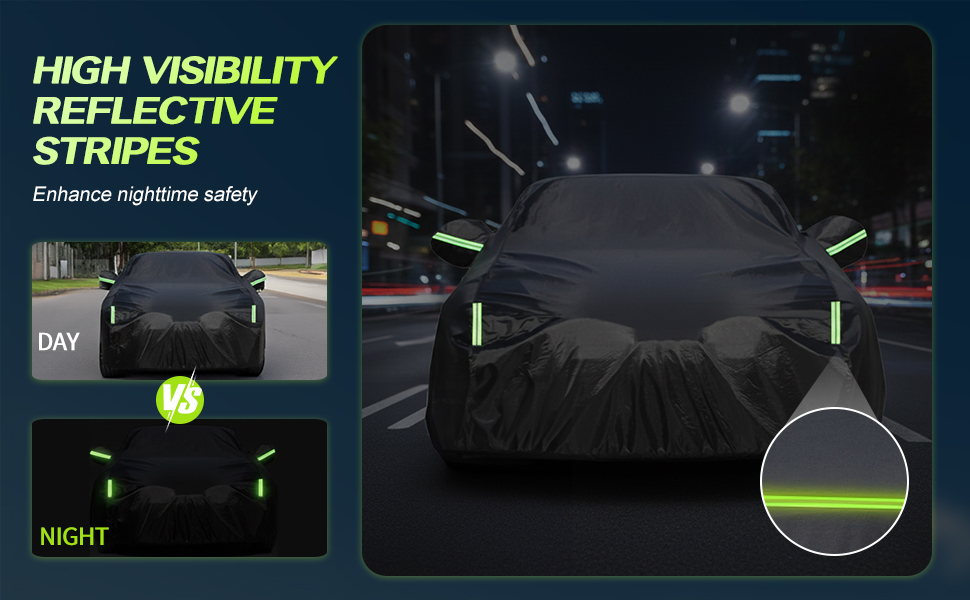 Convenient & Safe Design This car cover waterproof model features reflective safety strips for night-time visibility, helping to prevent accidents. The right-side zipper door allows quick access to your vehicle without removing the full car cover — perfect for daily use. The Maraiss car cover for winter blends convenience and protection, making it one of the most practical car covers for outdoor use. Suitable for any car cover SUV needs.