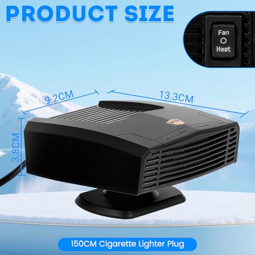 【Fast Defrost & Demisting】Designed for winter driving, this 12V 150W car heater quickly clears frost, ice and condensation from your windscreen within minutes. Ensures clear visibility and safe driving even on the coldest mornings.
