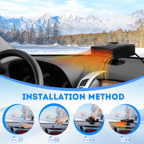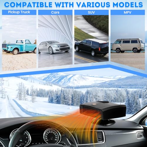 【Durable & Safe Design】Built with tough ABS material and a high-quality power cable to prevent overheating. Compact and lightweight, it is easy to carry, install and reposition. Perfect for daily use, camping trips, taxis, vans, or long drives in cold weather.