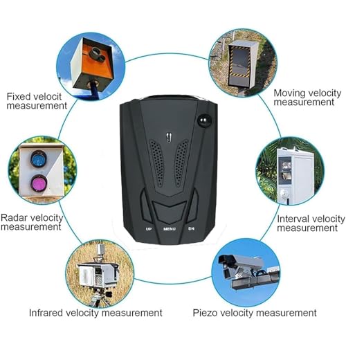 - Clear LED Display and Voice Alerts: Capable of detecting stationary or moving radar speed monitors from 200 to 1000 meters away, this detector responds swiftly with voice alarms to offer timely warnings during your drive. The 360 degree laser eye detector is enhanced with a vibrant color icon screen that displays digital signal strength and provides voice alerts, keeping your focus on the road.