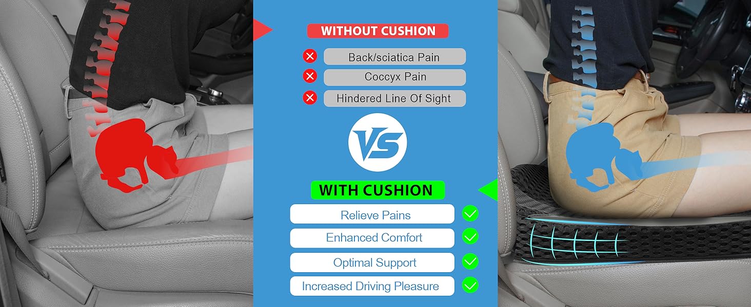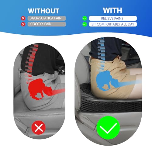 Comfortable & Supportive Car Cushion – Lofty Aim car seat cushion designed with your comfort & support in mind, provides firm yet comfortable padding you need most. High-density memory foam butt cushion to evenly distribute body weight and reduce spinal pressure, won't flattens