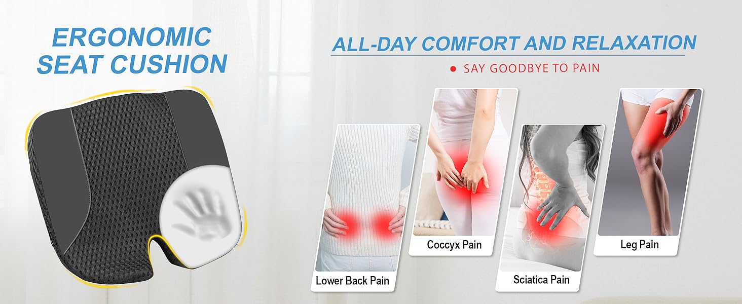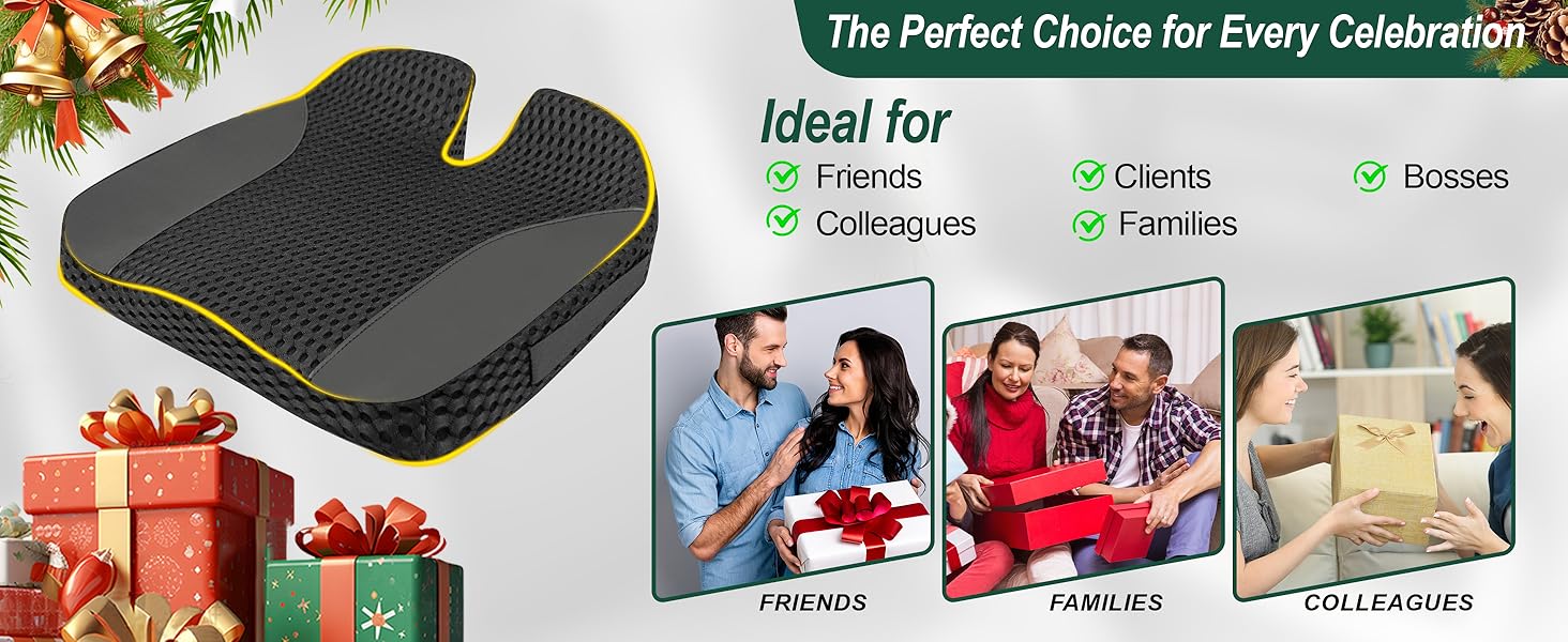 Excellent car seat cushion – It is combines comfort and support, for your family, loved, and friends to bring a better life and healthy posture into their daily lives, relieving pressure
