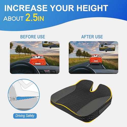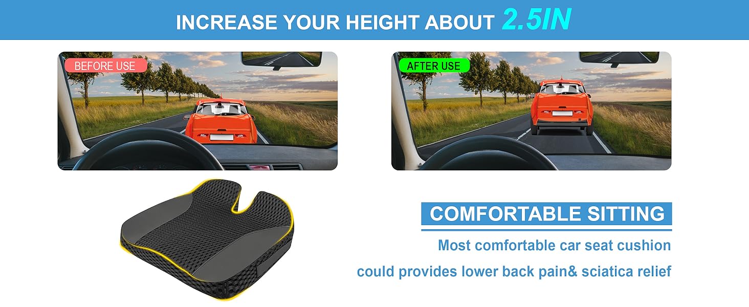 Car Booster Seat for Short Drivers – Supportive and firm car seat cushions for short people, enhance the driver's field of vision. By raising the seat height by 2.5", it aids drivers in having a clearer view, enhancing driving safety. It offers additional comfort for long drives for truck drivers