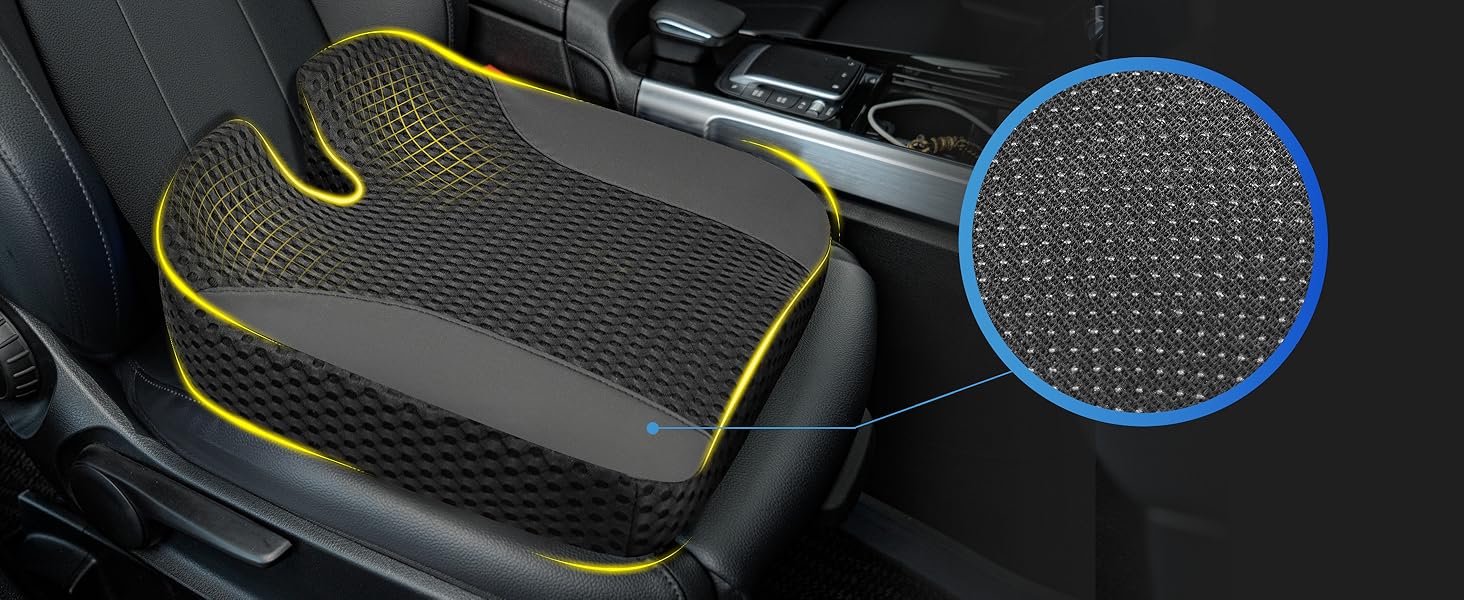 Premium Quality – This car seat pad is not only increase seat comfort but also provide additional seat protection. High-density memory foam offers lasting support, breathable 4D mesh fabric. The anti-slip bottom keeps the cushion in place