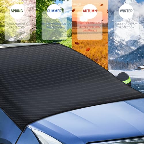 Car Windscreen Cover for Winter,Anti-frost and ice snow protection cover with 10 magnets and 6 straps, door handle cover, rain, snow, ice, frost, UV protection, suitable for large and small cars/SUV1