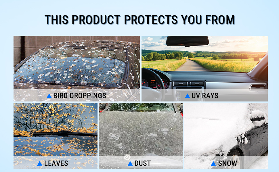Use it year-round – In winter, it prevents ice from forming on your windshield, wipers, mirrors, and door handles, providing winter protection for your car. No more scraping snow on snowy mornings. In summer, it acts as a sunscreen to block UV rays from entering your car. In spring and fall, it keeps pollen, leaves, dust, and bird droppings off your windows, keeping your car clean and hygienic.