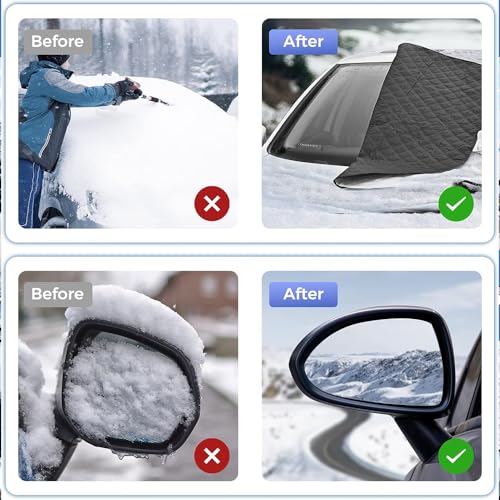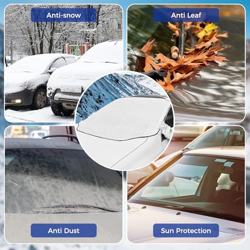 - All-season car windshield cover: This versatile cover offers year-round protection! In winter, it saves you the hassle of scraping ice in the morning. In summer, it protects against sunlight and harmful UV rays to keep the interior cool. In autumn/spring, it prevents dust, drips, and bird droppings, saving cleaning time