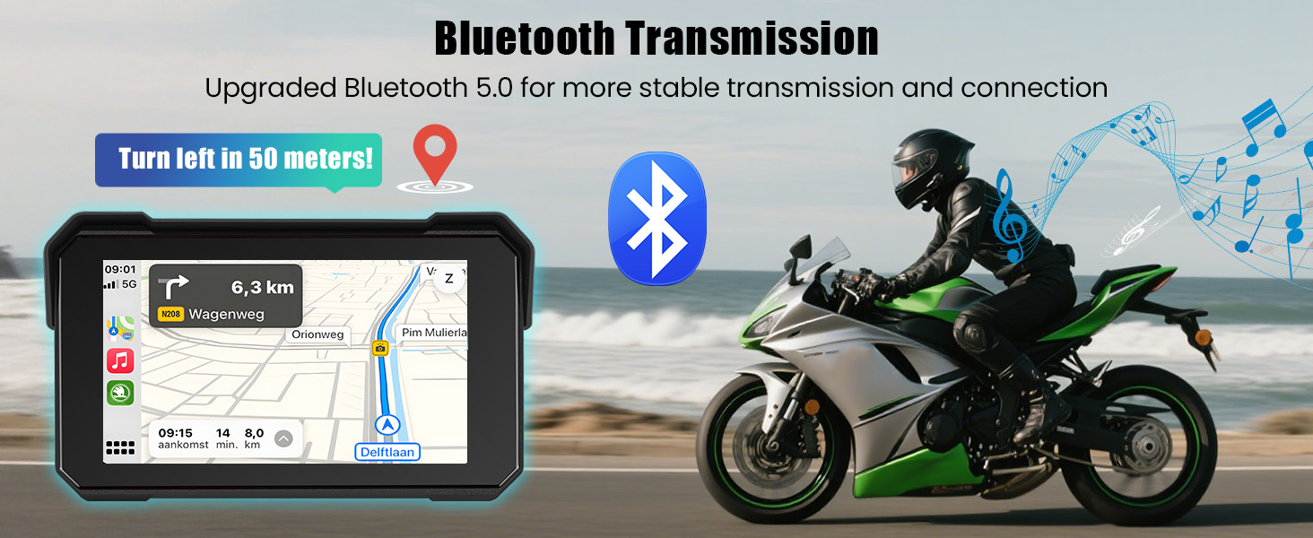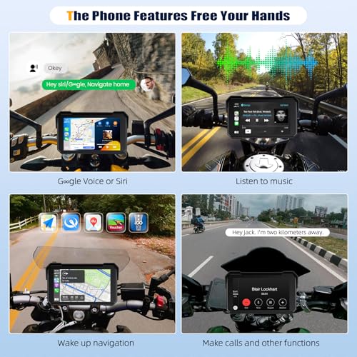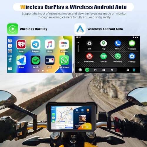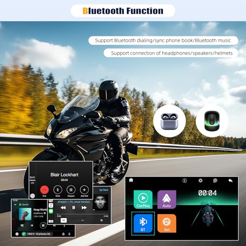 [Wireless CarPlay and Android Auto] Motorcycle screen built-in CarPlay and Android Auto. You don't need to connect via data cable, just connect to Bluetooth and enable WiFi on your phone.The car radio will quickly get the APP on your phone supported by the current system, such as iTunes, Apple Music, Siri, map navigation and and realize the voice command like Siri or Go-ogle Assistant to operate Apps or control the screen
