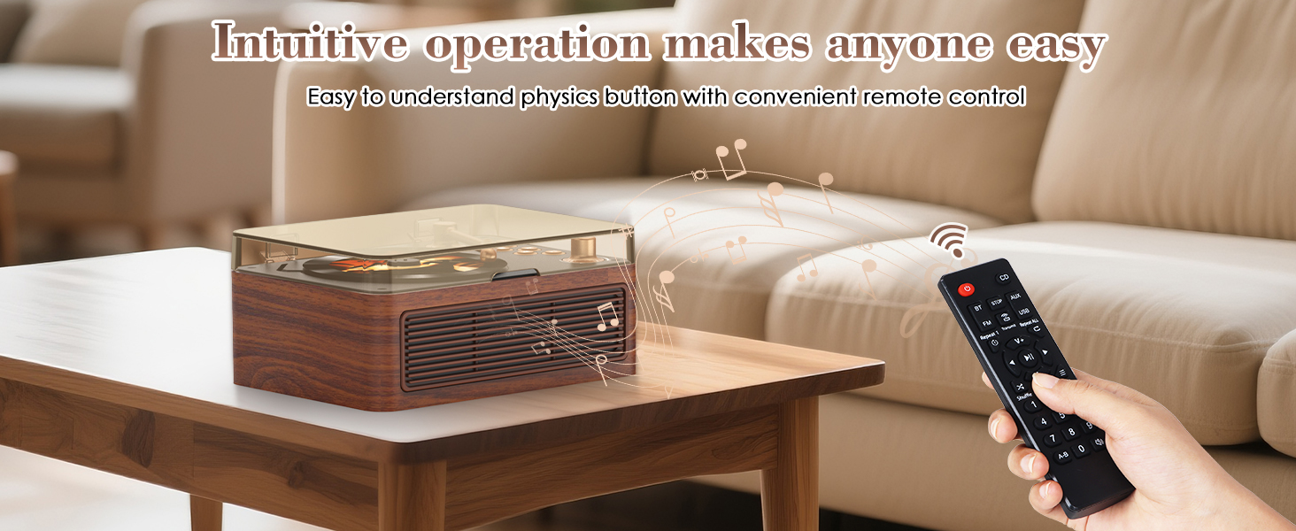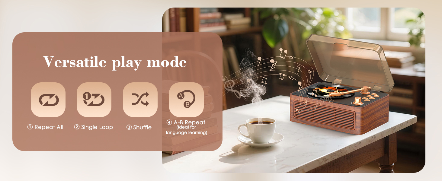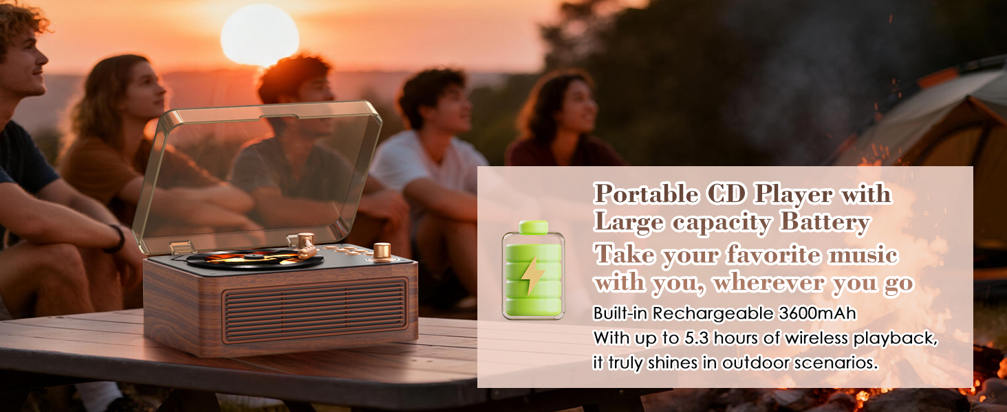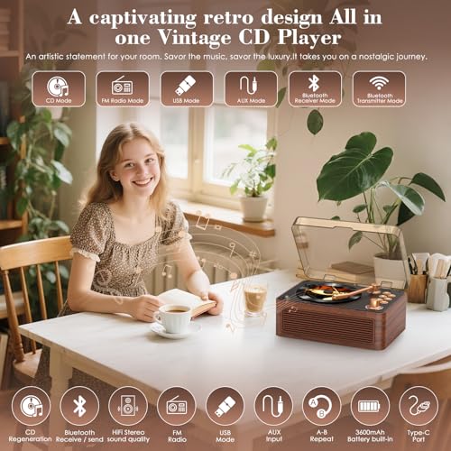 - Retro Design: Drawing inspiration from classic gramophones, this CD player features a vintage wooden design complete with a tone arm switch and transparent dust cover. Not only does it protect your CDs, but it also adds a touch of nostalgia. The A-B repeat function is particularly suited to children's language learning and educational needs. Its distinctive nostalgic aesthetic makes it an excellent gift for occasions such as birthdays, Christmas, or special events.