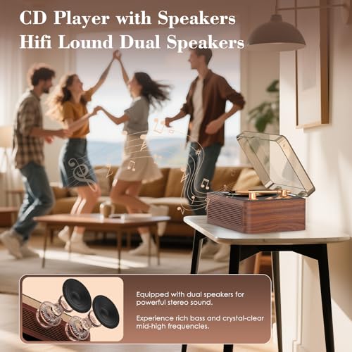 - CD Player with Speakers: The retro CD player is equipped with dual Hi fi stereo speakers, delivering an immersive audio experience. The CD-player produces clear, noise-free sound with stable, smooth playback. Whether you're listening to CDs, online music or radio stations, it provides seamless audio enjoyment, allowing you to embark on a wonderful musical journey at home.