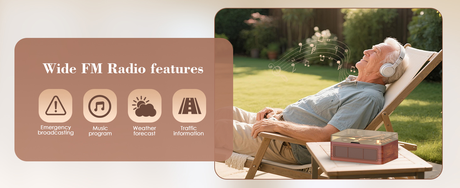 - Radio CD Player: Enjoy FM radio time and listen to all channels for weather information, news, traffic and music. The channel range is 76MHz-108.0MHz.The radio feature also includes an auto-scan function to quickly find available stations, and during the automatic channel search process, you can short press the play/pause button to stop automatic channel search and save the currently found channel as you want.
