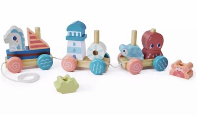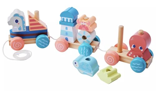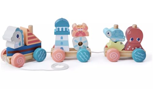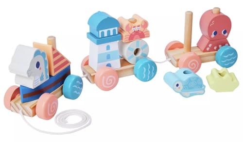 - Set sail for fun with the CV Under the Sea Pull Along Train! This adorable wooden toy features 3 connected cars and 12 colourful sea-themed blocks (octopus, seahorse & more) for stacking or pull-along play. Elastic cord posts prevent hazards, while smooth wood & MDF ensure safety. Bright colours stimulate vision, pulling builds coordination, and block play sparks imagination. EU safety certified—perfect for little explorers!