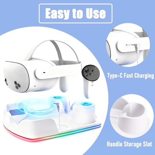 Charging Station Compatible with Meta Quest 2/3/3S, Fast Charging Dock with RGB Lighting for Controllers, Charging Station for VR Headse
