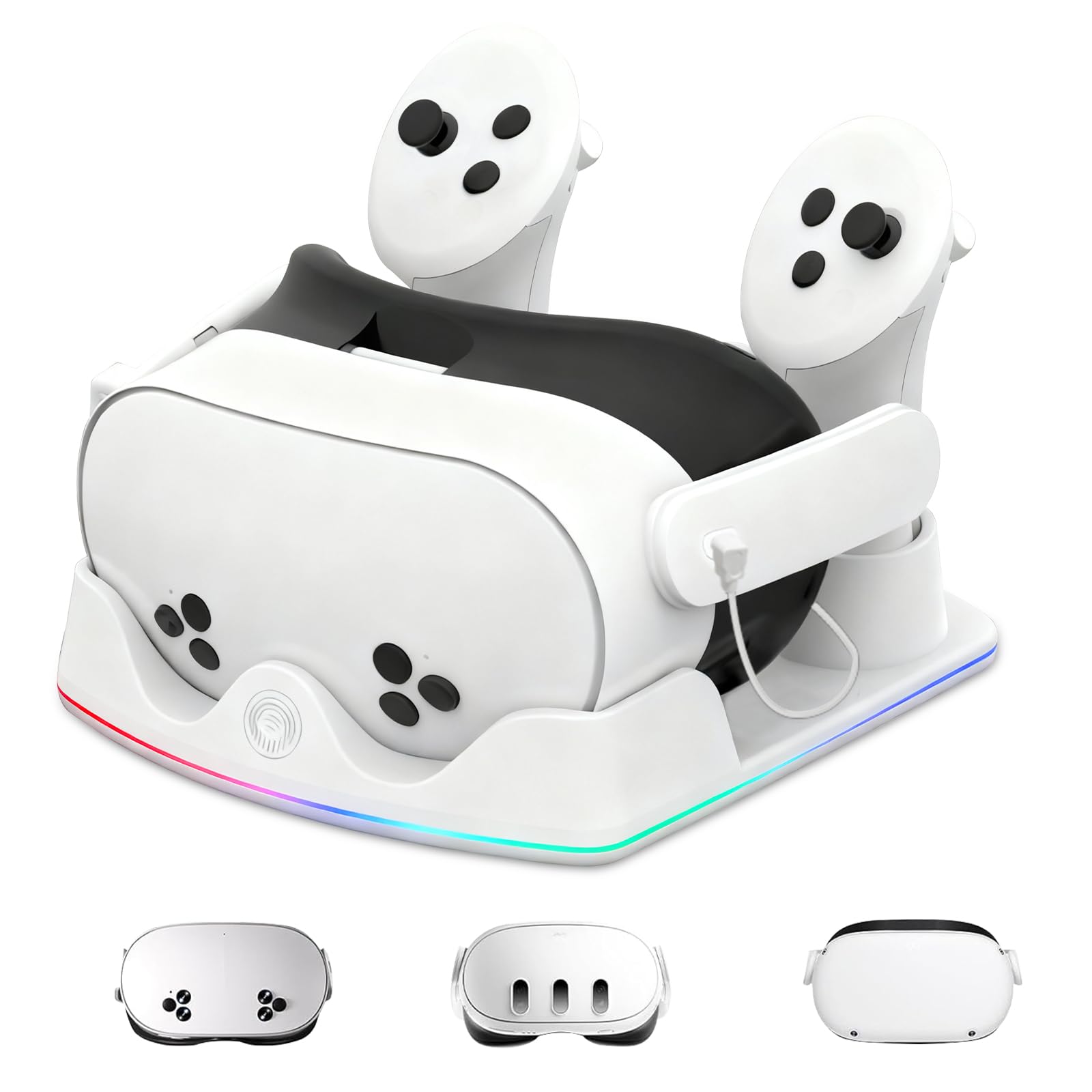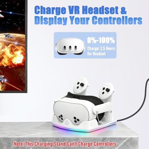 - 2-in-1 RGB VR Charging Station: This dual-purpose charging station for Meta Quest 3S/3/2 recharges your headset whilst storing your controllers. Featuring rapid charging and safety technology, our VR charging station fully recharges your headset in approximately 3 hours.