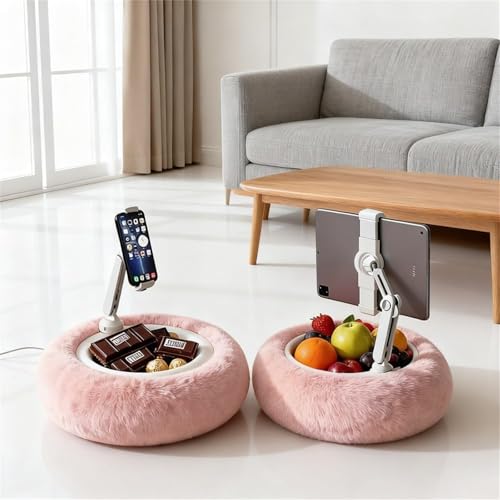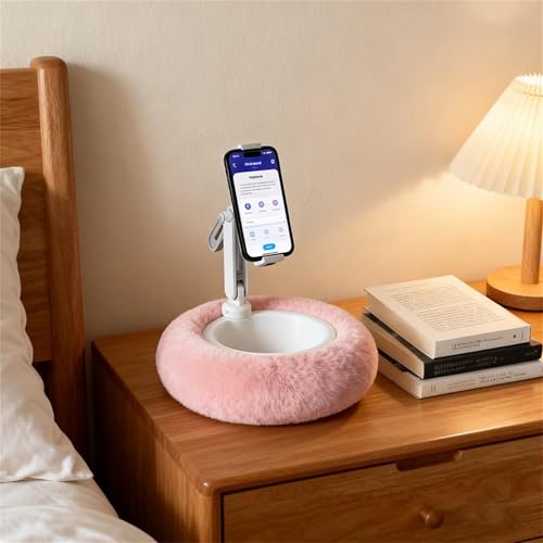Chill Nest Phone Holder, Phone Holder Snack Bowl Fluffy, Cozy 360° Adjustable Phone Stand, Reading Cradle Dock With Snack Storage, For Hands-Free Viewing, For Smartphone & Tablet (Pink)