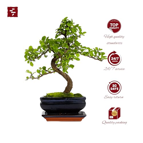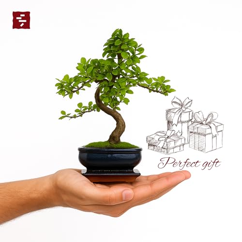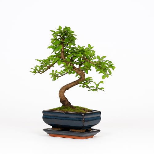 Chinese Elm Bonsai Tree 25–35cm | 6–8 Years Old | Elegant Indoor, Outdoor Bonsai Gift for Beginners | Includes Glazed Ceramic Pot & Drip Tray