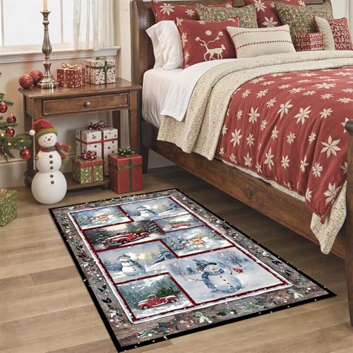 Christmas Area Rugs 60x90cm Snowman Rugs Living Room, for Bedroom Home Decor, Washable Non Slip Short Pile Carpe