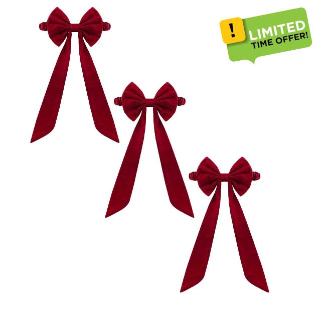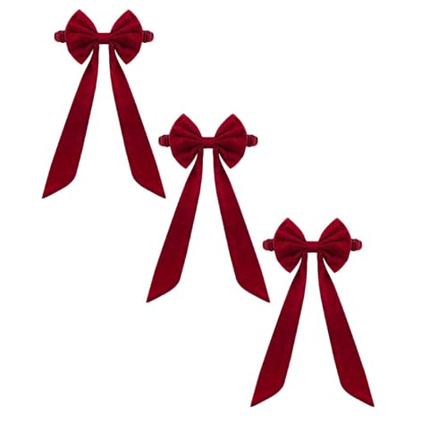 6PC Christmas Wine Red Christmas Bow Handicraft Retro Long Bow Used For Christmas Decoration Fine Material Durable Light And To Store Reusable