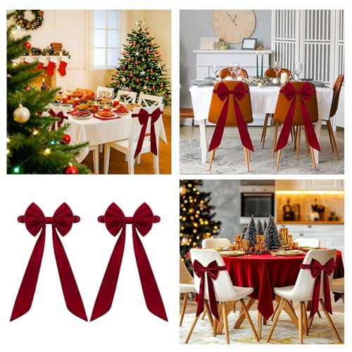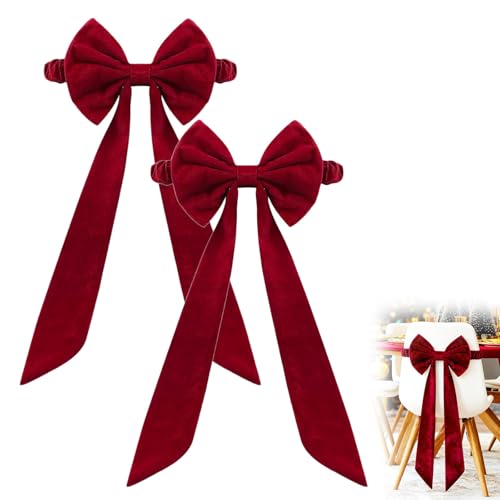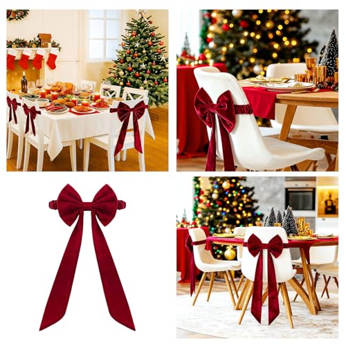 Christmas Burgundy Velvet Chair Sashes Christmas Red Chair Bows for Chairs Burgundy Christmas Chairs Bows with Elastic Band for Banquet Kitchen Hotel Home Party Decorations Wedding (6PC)