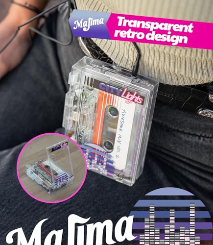 - Transparent retro design with iconic headphones. The transparent body reveals the nostalgic cassette mechanism, paired with classic wired headphones with orange foam for a true retro experience. A perfect blend of vintage aesthetics and modern appeal.