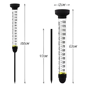 Standing at 100 cm tall, this extra-large gauge features bold, oversized markings along the tube that are easy to see from afar, making rainfall readings quick and effortless.