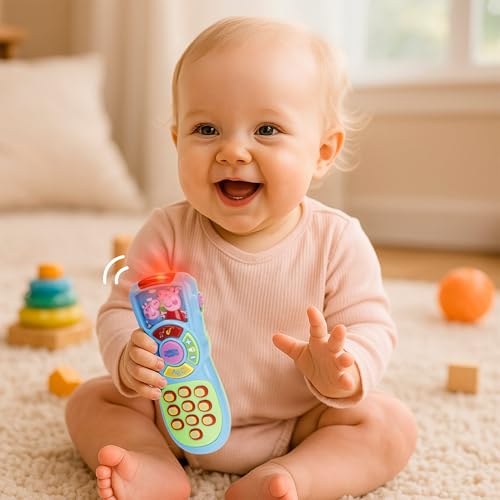 Light, sound and textures: the game controller has keys of various shapes, colors and textures, some of which are equipped with sounds. The remote control has numeric keys that activate sounds, light and Peppa Pig melody when you press it (works with 2 AAA batteries included)