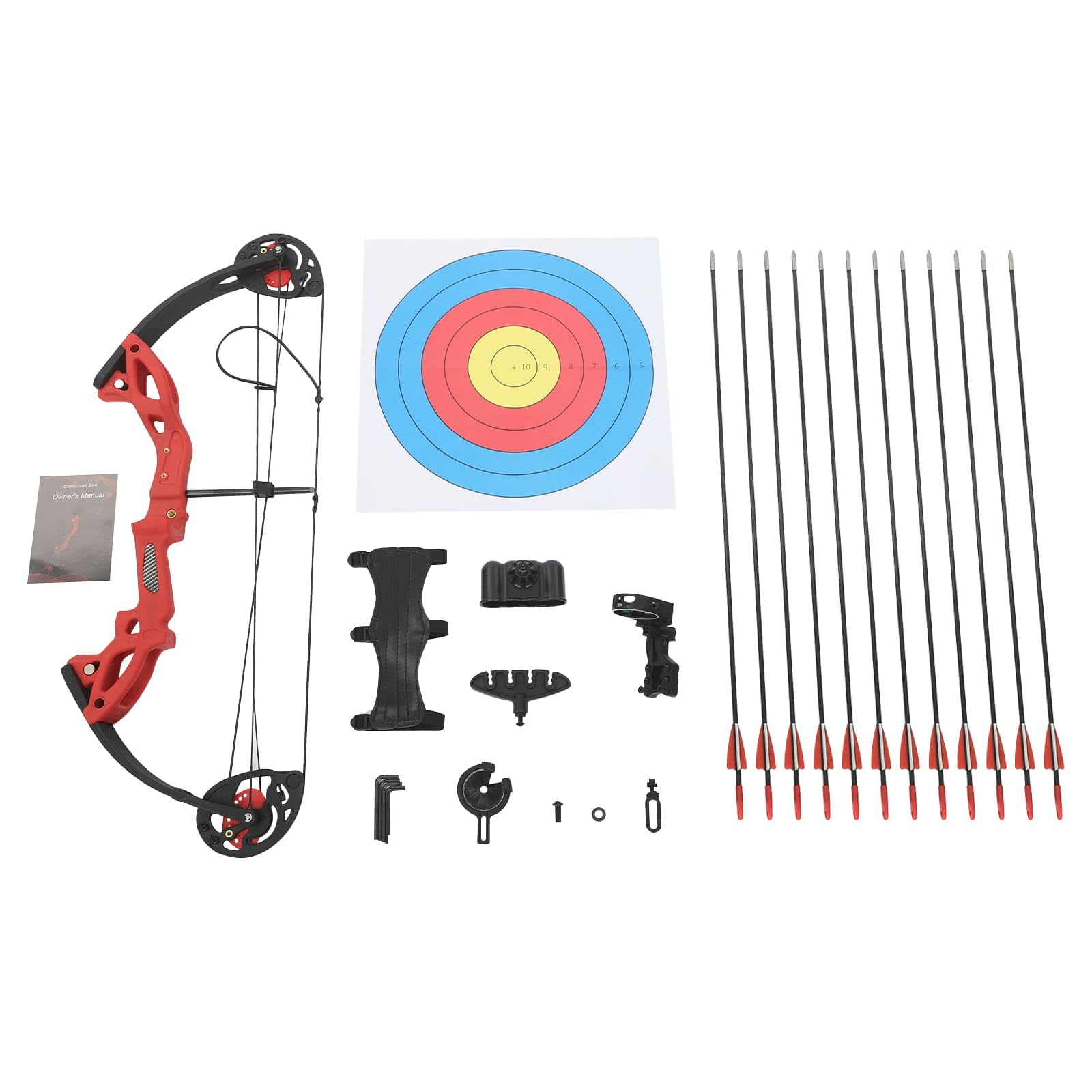 - 【Complete Training Kit】– Comes with 12 arrows, arm guard, single pin sight, arrow rest, target paper, and manual. Suitable for right-handed archers, this kit is perfect for outdoor or indoor target practice, competitions, and developing archery skills.
