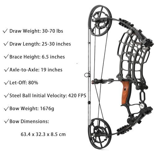 【Reliable Shooting Performance】 The 19-inch axle-to-axle length and 6.5-inch brace height balance maneuverability and stability, making it easy to handle while maintaining consistent shooting results.