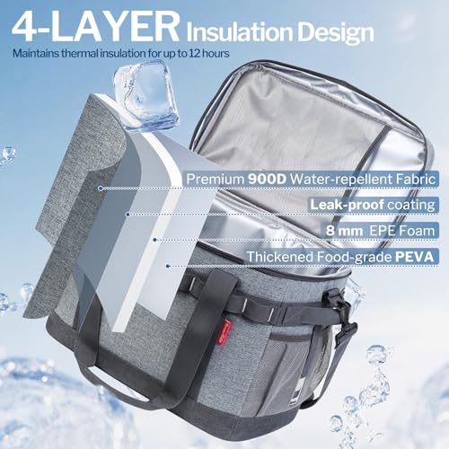 Cool Bag 20/30/40L, 12h Cooling, Large Foldable Picnic Bag