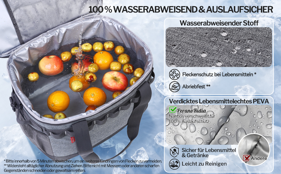Premium insulation: With 8mm EPE foam and food-safe PEVA inner lining, the bag keeps food and drinks pleasantly cool for up to 12 hours.