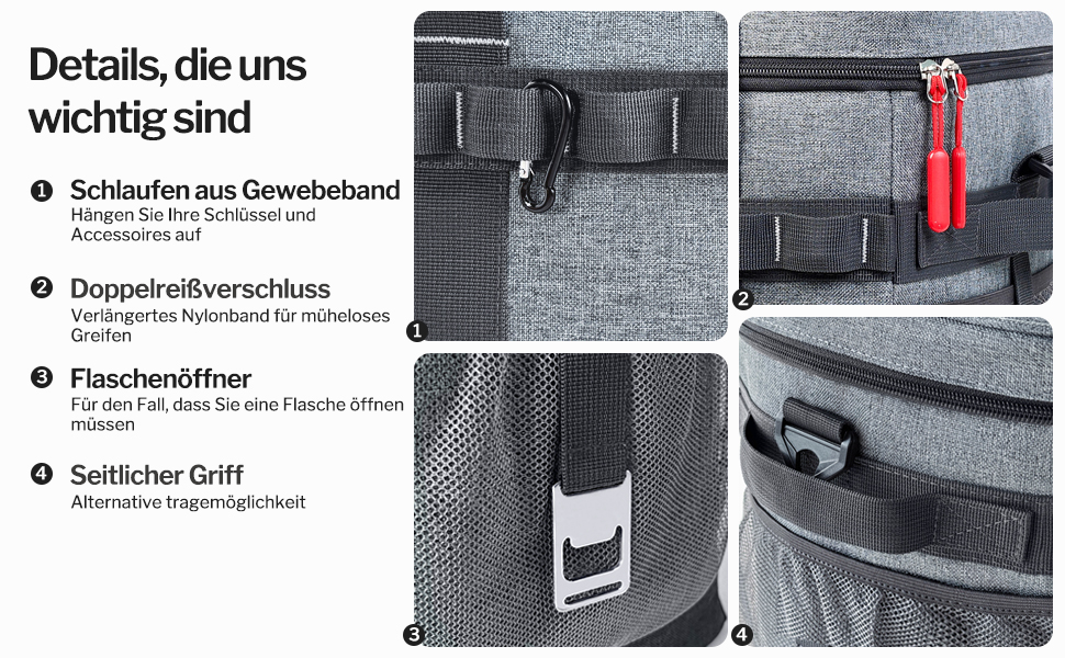 Durable & Stylish: Made of waterproof 900D fabric with reinforced metal zippers, built-in bottle opener and 3D accents with wave texture for an elegant look.