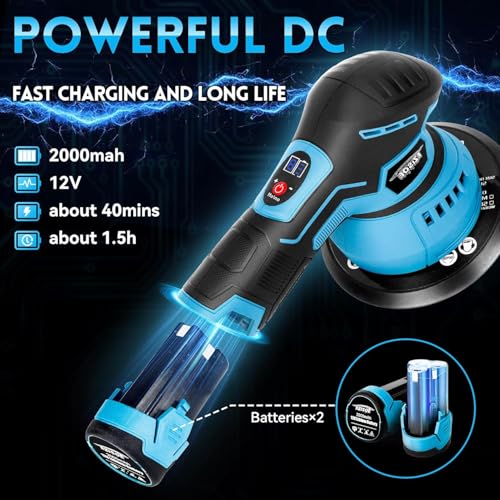 - 【Long Battery Life】Car polishers and buffers adopt wireless design and are equipped with 2 21V 2000 mAh rechargeable lithium batteries, which can be used alternately. When fully charged, it can be used for 90 minutes and only takes 45 minutes to charge, which improves the efficiency of use and says goodbye to the constraints of cables. It aims to provide the most convenient car beauty care solution. In addition, the LCD display on the handle displays the power and speed information, so that you can always know the battery status of the car polish machine.